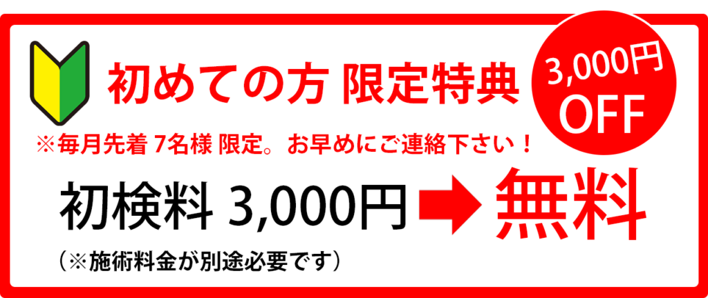 毎月 先着7名様限定 初検料 割引中 (LINE予約限定)